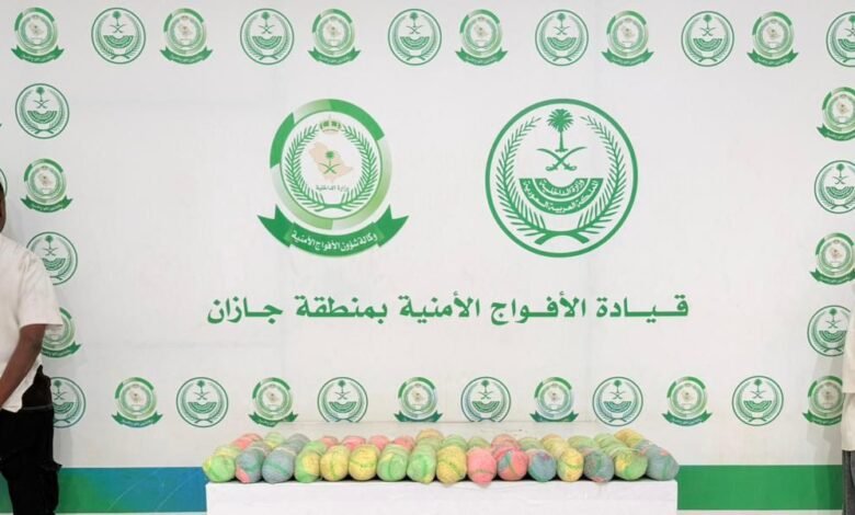 دوريات الأفواج الأمنية بمنطقة جازان تقبض على شخصين لترويجهما 13 كلجم من القات المخدر