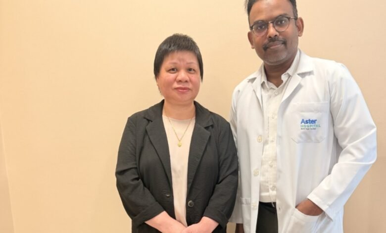 مقيمة فلبينية تبلغ من العمر 48 عاماً تتلقى العلاج من ورم دماغي نادر ومعقد يصيب وريداً دماغياً رئيسياً في مستشفى أستر بالقصيص