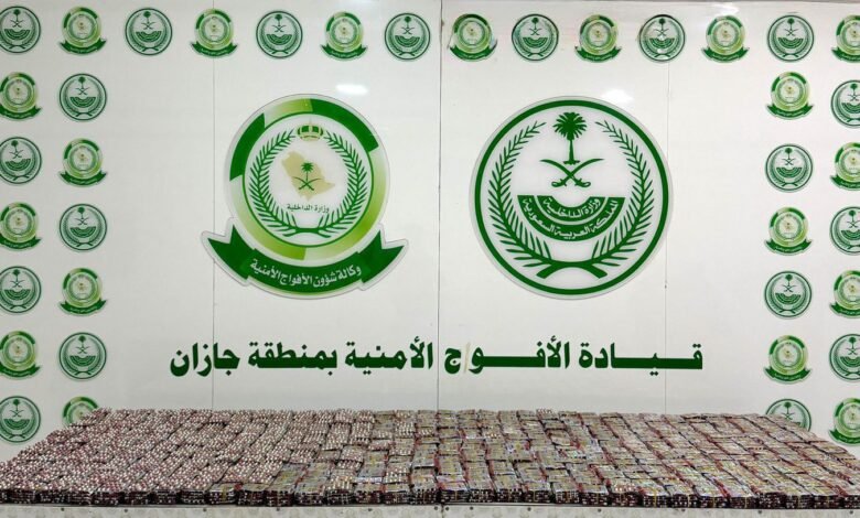 دوريات الأفواج الأمنية بمنطقة جازان تحبط تهريب 74,250 قرصًا خاضعًا لتنظيم التداول الطبي