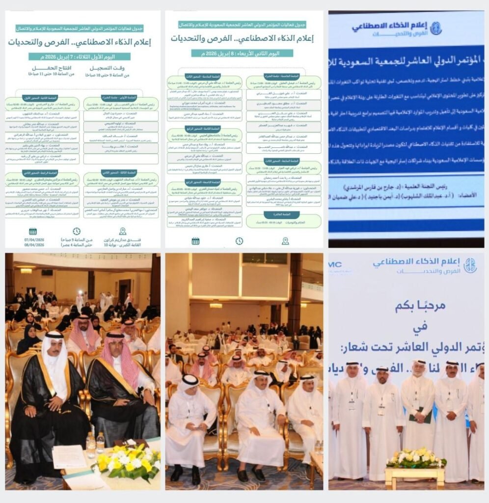 اختتمت مؤخرا أعمال المؤتمر الدولي العاشر “إعلام الذكاء الاصطناعي.. الفرص والتحديات” الذي نظمته الجمعية السعودية للإعلام والاتصال على مدى يومي الثلاثاء والأربعاء 7 – 8 أبريل 2026م بفندق مداريم كراون الرياض تزامنا مع اختيار 2026 عام الذكاء الاصطناعي، وشمل المؤتمر 10جلسات ، واستضاف 40 متحدثاً ومتحدثة من داخل المملكة وخارجها.