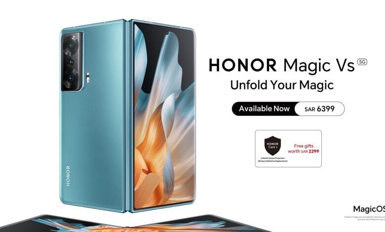 HONOR Magic Vs 5G will be available for purchase in KSA Markets at a price of SAR 6399 and special gifts worth SAR 2299 including HONOR Care+ (6 Month Screen Protection + 30 Days Malfunction Replacement.