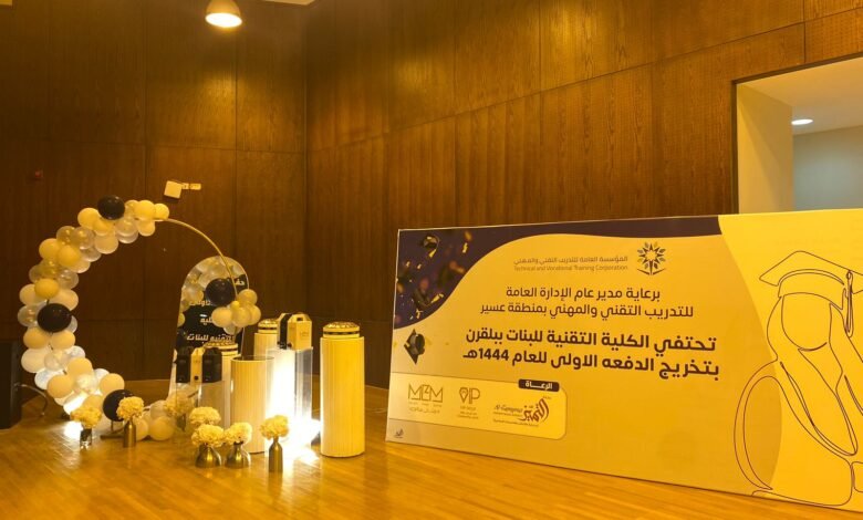 برعاية مدير عام الإدارة العامة للتدريب التقني والمهني بعسير، الدكتور سليمان بن عبدالخالق الحفظي ؛ تحتفى الكلية التقنية للبنات بمحافظة بلقرن بتخريج الدفعة الأولى من متدرباتها للعام 1444هـ على المسرح الرئيسي بمقر الكلية بسبت العلايا .
