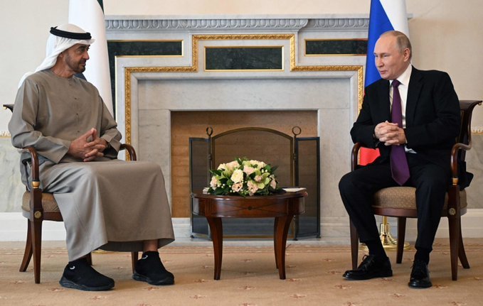 من جهته، قال الشيخ محمد بن زايد آل نهيان للرئيس الروسي، على هامش منتدى في سانت بطرسبرج، اليوم الجمعة: إن هناك جسورا يتم بناؤها لتعزيز الشراكة بين البلدين.
