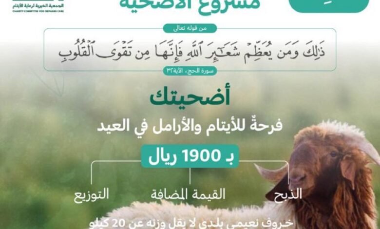 تعتزم الجمعية الخيرية لرعاية الأيتام بمنطقة الرياض “إنسان” توزيع 1250 أضحية على أسر الجمعية