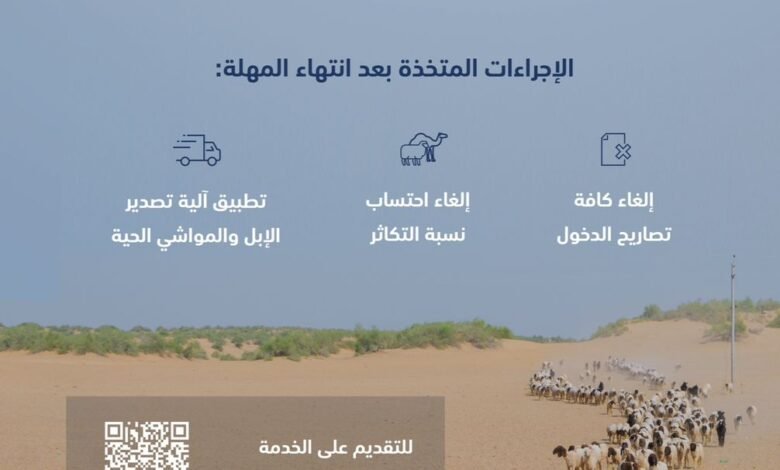 ونوّهت الوزارة في إطار حملة #حمايةالغطاءالنباتي التي أطلقتها عبر منصات التواصل الاجتماعي بهدف التوعية بأهمية الحفــاظ على الغطــاء النباتي وتنميته؛ إلى قُرب انتهاء المهلة الممنوحة لعودة الإبل والمواشي المملوكة لغير السعوديين إلى دولهم، موضحة أنه تبقى على انتهائها أقل من شهرين، داعية أصحاب ومُلّاك تلك المواشي للاستفادة من الفترة المتبقية والإسراع بإخراج مواشيهم قبل نهاية المهلة في الحادي والثلاثين من شهر أغسطس المقبل، مشيرة إلى أنها ستبدأ بعد انتهاء المهلة في تطبيق الإجراءات المُعلنة بحق المُلّاك والرعاة الذين لم يلتزموا بعودة مواشيهم وإبلهم؛ والتي تتضمن إلغاء كافة تصاريح الدخول، وإلغاء احتساب نسبة التكاثر، بالإضافة إلى تطبيق آلية تصدير الإبل والمواشي الحية على مواشي الرعي.