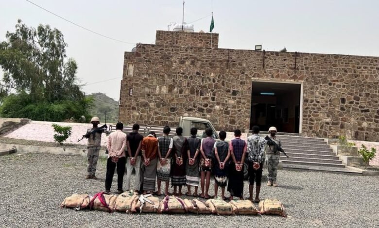القبض على 10 مخالفين يمنيين لتهريبهم 140 كيلو من القات المخدر بجازان