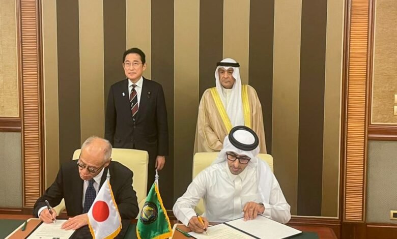 The General Cooperation Council (GCC) and Japan announced their resumption of the Free Trade Agreement negotiations, by signing a joint statement in this regard on the sidelines of the meeting held by Mr. Fumio Kishida, Prime Minister of Japan, and His Excellency Mr. Jassem Mohamed Albudaiwi, Secretary General of the GCC, Sunday (July 16, 2023) in Jeddah, Kingdom of Saudi Arabia.