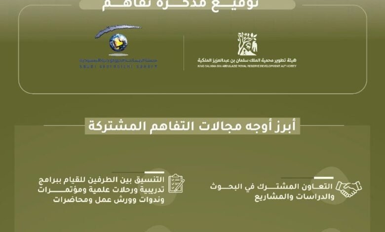 هيئة تطوير محمية الملك سلمان بن عبد العزيز الملكية توقع مذكرة تفاهم مع هيئة المساحة الجيولوجية