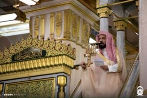 وفي المدينة المنورة أوصى إمام وخطيب المسجد النبوي الشيخ الدكتور أحمد الحذيفي المسلمين بتقوى الله قال تعالى ((وَلِلَّهِ مَا فِي السَّمَاوَاتِ وَمَا فِي الْأَرْضِ ? وَلَقَدْ وَصَّيْنَا الَّذِينَ أُوتُوا الْكِتَابَ مِن قَبْلِكُمْ وَإِيَّاكُمْ أَنِ اتَّقُوا اللَّهَ ? وَإِن تَكْفُرُوا فَإِنَّ لِلَّهِ مَا فِي السَّمَاوَاتِ وَمَا فِي الْأَرْضِ ? وَكَانَ اللَّهُ غَنِيًّا حَمِيدًا ))، مبينًا أن التقوى هي ميزان الكرامة ومجمع الفضائل ومفتاح البركات ومطية السائلين إلى رب العالمين .
