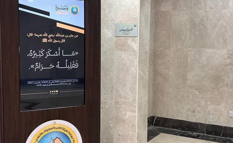 كثفت هيئة الأمر بالمعروف والنهي عن المنكر بمحافظة الدرعية، جهودها التوعوية والوقائية بنشر برنامج “فاجتنبوه لعلكم تفلحون” للتوعية بأضرار المخدرات عبر اللوحات والشاشات الرقمية بمقر الهيئة للمنسوبين والزوار، وعدد من المحلات التجارية، تزامناً مع الحملة الأمنية لمكافحة المخدرات.يذكر أن البرنامج يهدف إلى بيان الحكم الشرعي لتحريم المخدرات، وإبراز خطرها وأضرارها على المجتمع، وإبراز جهود المملكة العربية السعودية في محاربتها، وإسهام الرئاسة العامة مع الجهات المعنية في الحد من انتشارها.