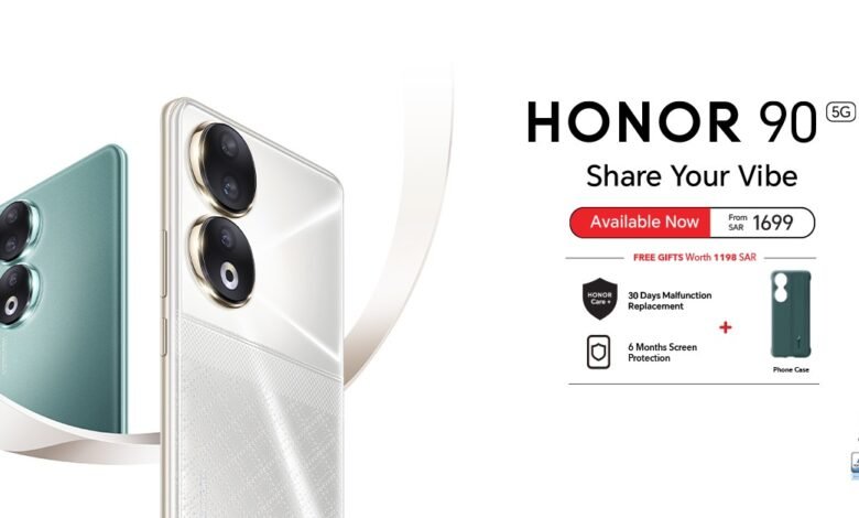 HONOR 90 is available now for pre-order from SAR 1699 for (8GB+256GB) version and SAR 2099 for (12GB+512GB) version with free gifts worth SAR 1327 including Free Earbuds, HONOR Care+ & more.
