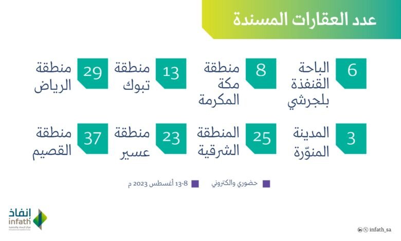 “إنفاذ” يسند 17 مزادًا علنيًا لبيع وتصفية 144 عقاراً تقع في 8 مناطق ومدن في المملكة