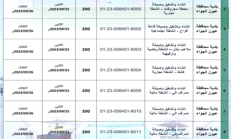 بلدية عيون الجواء تطرح 8 فرصة استثمارية أمام القطاع الخاص