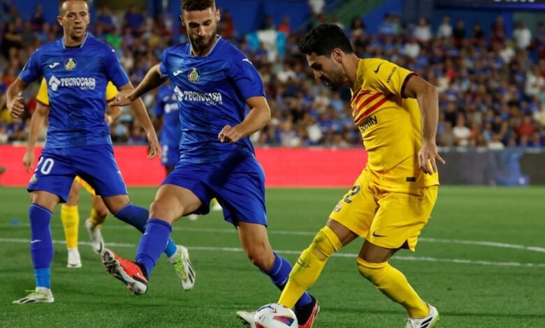 استهل برشلونة رحلة الدفاع عن لقب دوري الدرجة الأولى الإسباني لكرة القدم بتعادل دون أهداف مع مضيفه خيتافي في مباراة شهدت طرد لاعب من كل فريق بجانب المدرب تشافي هرنانديز يوم أمس الأحد.