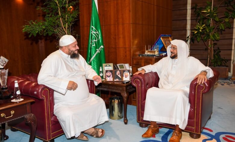 استقبل معالي وزير الشؤون الإسلامية والدعوة والإرشاد الشيخ الدكتور عبداللطيف بن عبدالعزيز آل الشيخ، اليوم الخميس غرة شهر صفر 1445هـ بمكتبه في مقر الوزارة بالرياض، مفتي محافظة دافينا بجمهورية ألبانيا الشيخ بليدار علي، وذلك عقب إجراءه عملية جراحية لتكميم المعدة لإنهاء معاناته مع السمنة.