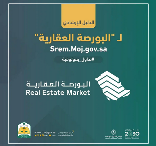 أصدرت وزارة العدل الدليل الإرشادي للبورصة العقارية، المتضمن شرحاً مفصلاً لكيفية الاستفادة من الخدمات المتنوعة المتاحة عبر رابط البورصة Srem.moj.gov.sa.