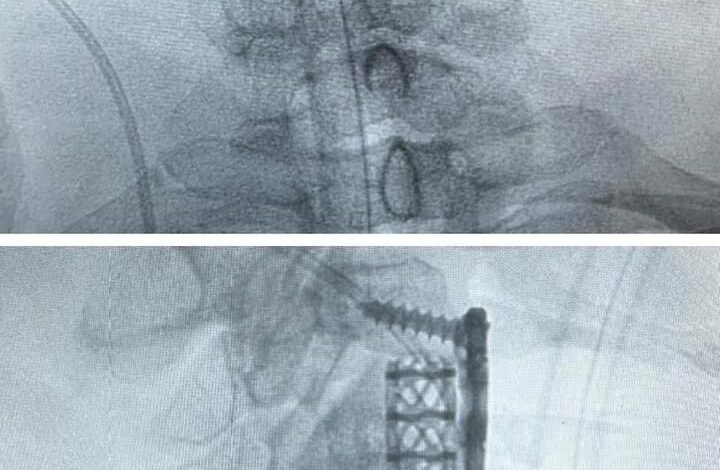 وبعد إجراء الفحوصات الطبية اللازمة تبيّن وجود ضغط على الحبل الشوكي بسبب الغضاريف بين الفقرات الثالثة والرابعة العنقية، ونتوءات عظمية خلف الفقرة العنقية الرابعة، حيث قام الفريق الطبي بقيادة إستشاري جراحة العظام وجراحة العمودي الفقري د. متعب أبو راس بإزالة الغضروف مع استئصال جزئي للفقرة الرابعة؛ لتحرير الحبل الشوكي، ليتم بعدها تثبيت الفقرات بنجاح، حيث تحسنت حالة المريض تماماً بعد العملية الجراحية -ولله الحمد-.
