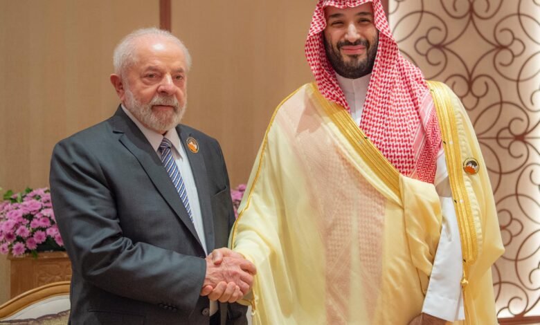 التقى صاحب السمو الملكي الأمير محمد بن سلمان بن عبدالعزيز آل سعود ولي العهد رئيس مجلس الوزراء رئيس وفد المملكة المشارك في قمة قادة دول مجموعة العشرين، في مدينة نيودلهي بجمهورية الهند، اليوم، برئيس جمهورية البرازيل لويس إيناسيو لولا دا سيلفا
