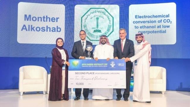 وذلك نظير مشروعهم في تصنيع مواد نوعيه تساعد بشكل فعال في تحويل ثاني أكسيد الكربون لمنتجات تستخدم كوقود لإنتاج الطاقة