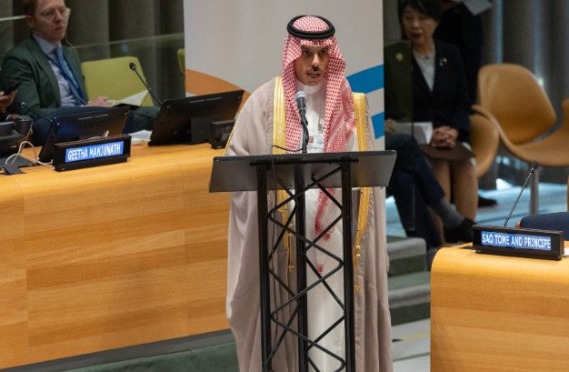 وعبّر سموّه عن وقوف المملكة إلى جانب قضايا العالم الإسلامي، ومساندتها لسعي الشعوب الإسلامية المشروع للحصول على حقوقها المكفولة بالقانون والمواثيق الدولية والقرارات الأممية، وعلى رأسها القضية الفلسطينية، والسعي لإيجاد حل عادل وشامل وفق قرارات الشرعية الدولية ومبادرة السلام العربية، وإقامة دولة فلسطينية مستقلة على حدود 1967م، عاصمتها القدس الشرقية.