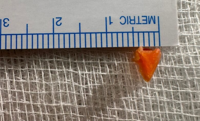 واتضح أن الجسم الغريب الذي تسبب في انسداد كامل للقصبة الهوائية اليسرى هو قطعة جزر غير مطبوخ بمقاس ٦*٤ ملم ، وبعد استقرار حالته الصحية في العناية المركزة للأطفال، غادر المستشفى وهو بصحة جيدة.
