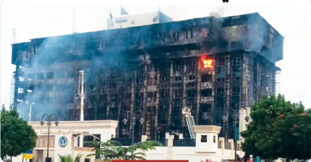 وأظهرت صور انتشرت على الإنترنت ألسنة لهب ضخمة تلتهم طبقات المبنى الذي يعد من الأكبر في المدينة الواقعة على الضفة الغربية لقناة السويس.