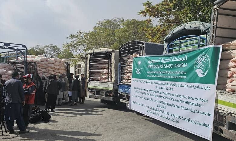 مركز الملك سلمان للإغاثة يخصص 9,765 طنًا من السلال الغذائية للمتضررين من الزلزال في غرب أفغانستان