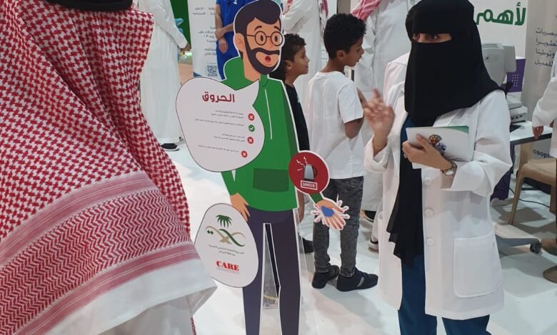 وشاركت “صحة الرياض” بجناح توعوي وعيادة طبية متكاملة قدمت العديد من الخدمات الصحية لزوار المعرض ، وعرض عدداً من المجسمات التوعوية والنشرات ، وعرض مرئي حول التعامل مع المشكلات الصحية التي قد يتعرض لها الأفراد خلال الرحلات والمخيمات البرية مثل لدغات العقارب والأفاعي وحالات التسمم الغذائي والتعرض للحروق.