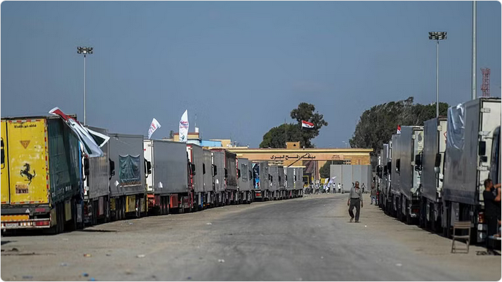 بدء عبور شاحنات المساعدات الإنسانية من معبر رفح إلى قطاع غزة