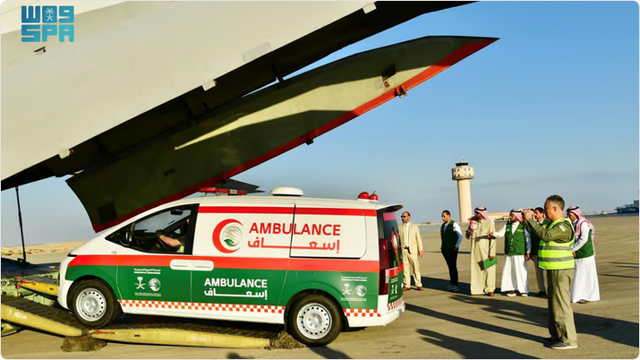 وصلت إلى مطار العريش الدولي بجمهورية مصر العربية، اليوم، الطائرة الإغاثية السعودية الثامنة، التي يسيرها مركز الملك سلمان للإغاثة والأعمال الإنسانية، تحمل على متنها (3) سيارات إسعاف من أصل (20) سيارة إسعاف من المقرر وصولها تباعاً، تمهيداً لنقلها إلى المتضررين من الشعب الفلسطيني داخل قطاع غزة.