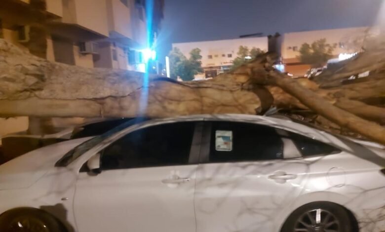 نجاة شخصين بعد سقوط شجرة عملاقة على سيارتهما في خليج الرياض