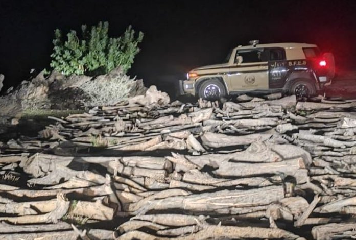 وأكدت القوات أن عقوبة نقل وبيع وتخزين الحطب المحلي تصل إلى (16,000) ﷼ لكل متر مكعب، وجرى تسليم الكميات المضبوطة للجهات المختصة بالمركز الوطني لتنمية الغطاء النباتي ومكافحة التصحر.