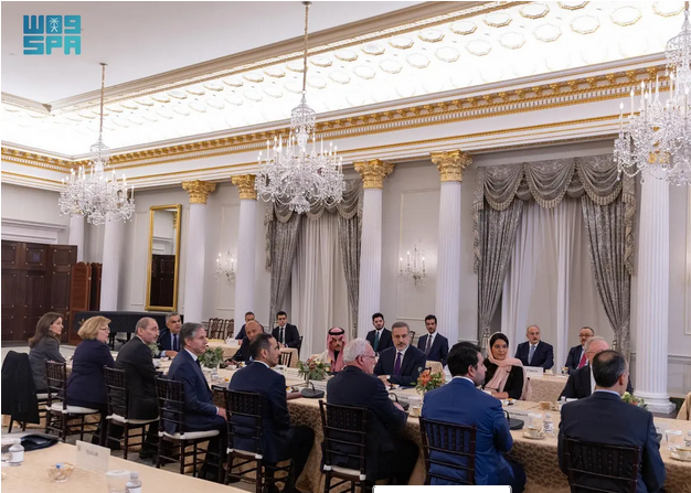 وفد اللجنة الوزارية المكلفة من القمة العربية الإسلامية يطالب بلينكن بوقف إطلاق النار في غزة