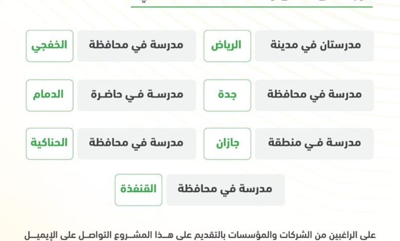 على الراغبين من الشركات والمؤسسات بالتقديم على هذا المشروع، على الإيميل الخاص بالإدارة العامة للمرور _إدارة الرخص المرورية (drivingschool@emroor.gov.sa) ليتم تزويدهم بالشروط والمواصفات الخاصة بالمشروع، وتقديم العرض خلال شهر من الإعلان.