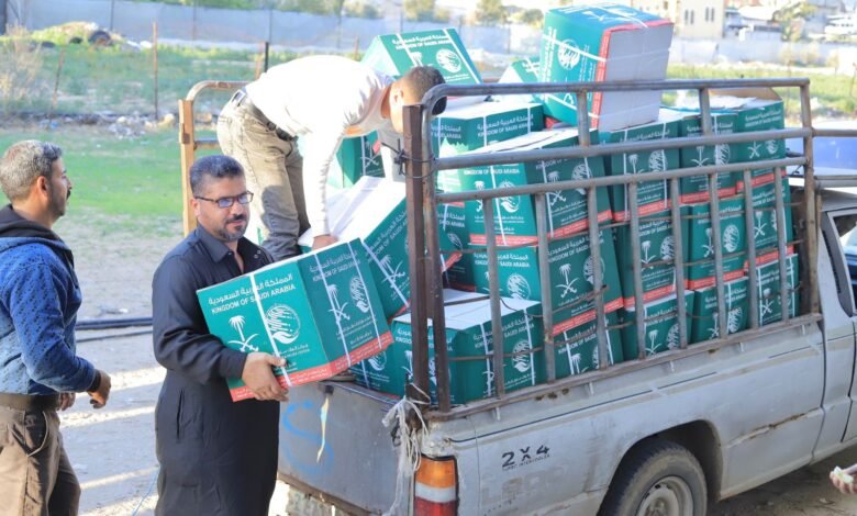 مركز الملك سلمان للإغاثة يوزع سلالا غذائية في منطقة خربة العدس بمدينة رفح بقطاع غزة