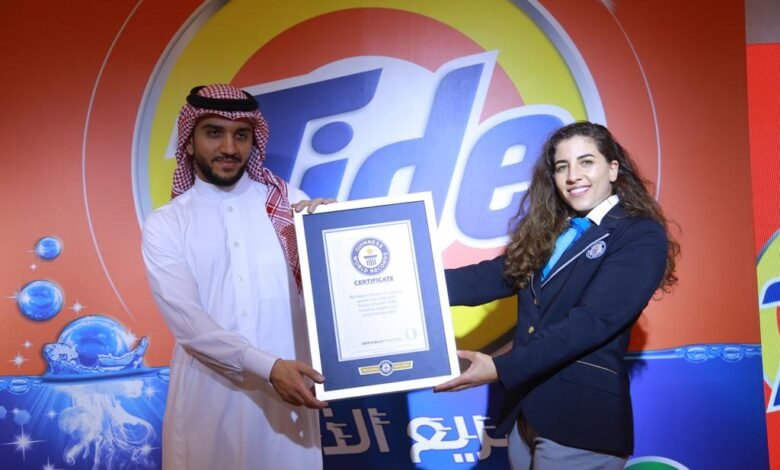 3rd March 2024: Jeddah – Saudi Arabia: Tide Laundry Detergent, in partnership with Panda Stores, is proud to announce a new campaign where Panda and Tide, Panda and Keswah Aisha have joined hands to help the under privileged this Ramadan by giving free clothes on the purchase of Tide packs from Panda. This campaign marks the launch of Tide’s revolutionary ‘Fast Dissolving’ detergent powder which is an advanced detergent that dissolves quickly solving the #1 consumer tension of residues being left in clothes after wash. The campaign was kicked off with the historic achievement of setting a new Guinness World Record for the largest box of Tide laundry detergent, towering at an impressive 4 meters and weighing half a ton.