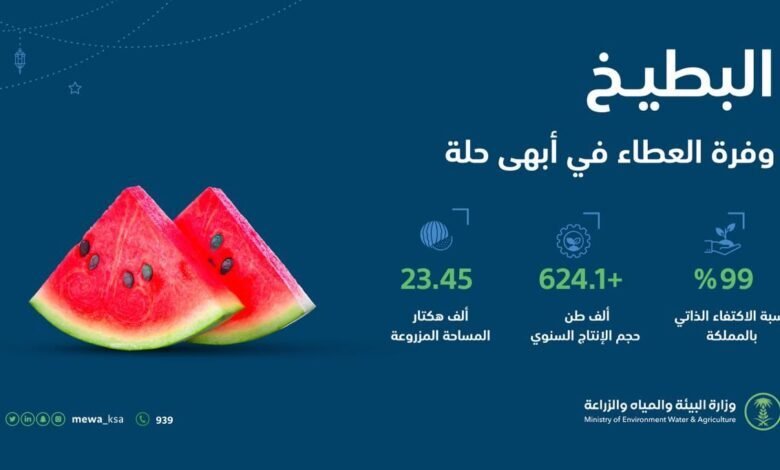 “البيئة “: أكثر من 624 ألف طن حجم إنتاج البطيخ سنويًّا بالمملكة ونسبة اكتفاء ذاتي تصل إلى 99%