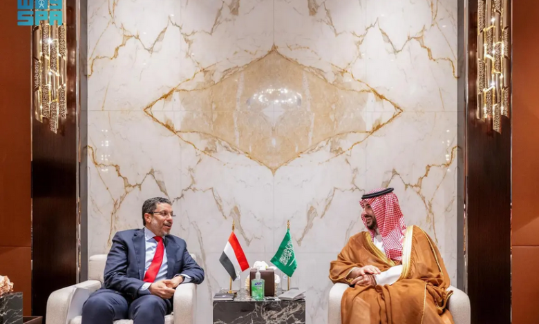 بتوجيه من القيادة – حفظها الله – التقى صاحب السمو الملكي الأمير خالد بن سلمان بن عبدالعزيز وزير الدفاع في جدة، اليوم، دولة رئيس مجلس الوزراء وزير الخارجية وشؤون المغتربين اليمني الدكتور أحمد عوض بن مبارك.