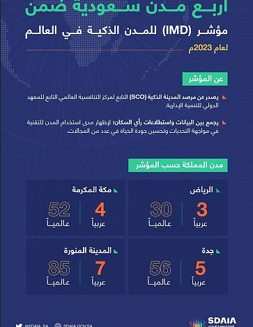 4 مدن بالمملكة ضمن مؤشر IMD للمدن الذكية في العالم لعام 2023م