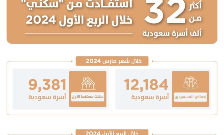 أكثر من 32 ألف أسرة استفادت من “سكني” خلال الربع الأول من 2024.. بزيادة تتجاوز 15% مقارنة بالعام الماضي
