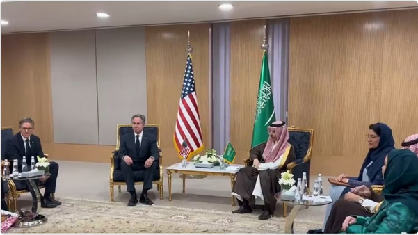 بدأ اجتماع وزير الخارجية الأمير فيصل بن فرحان، ونظيره الأمريكي أنتوني بلينكن، لمناقشة القضايا ذات الاهتمام المشترك و الأوضاع في غزة.