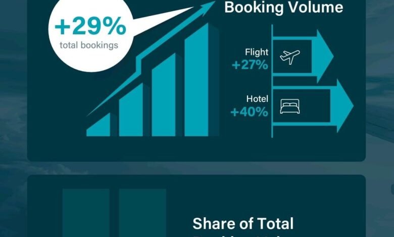 As Saudi travellers continue to explore their country for leisure, 53% of total bookings made across Almosafer’s booking channels were recorded for the domestic segment, showcasing a continued demand for travel within the country. The sustained interest in domestic tourism showcases the success of government and private sector initiatives to boost local tourism, resulting in a 29% increase in total domestic booking volume across Almosafer channels. Flights alone saw a 27% increase while hotel bookings showcased nearly double at 40%, demonstrating robust domestic growth.