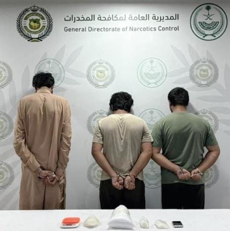 قبضت المديرية العامة لمكافحة المخدرات على (3) مقيمين من الجنسية الباكستانية بالمنطقة الشرقية لترويجهم (2.1) كيلوجرام من مادة الميثامفيتامين المخدر (الشبو)، وجرى إيقافهم واتخاذ الإجراءات النظامية بحقهم، وإحالتهم إلى النيابة العامة.