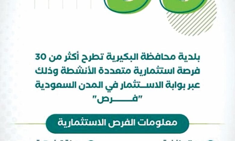 بلدية محافظة البكيرية تطرح أكثر من ٣٠ فرصة استثمارية لعام 2024 م