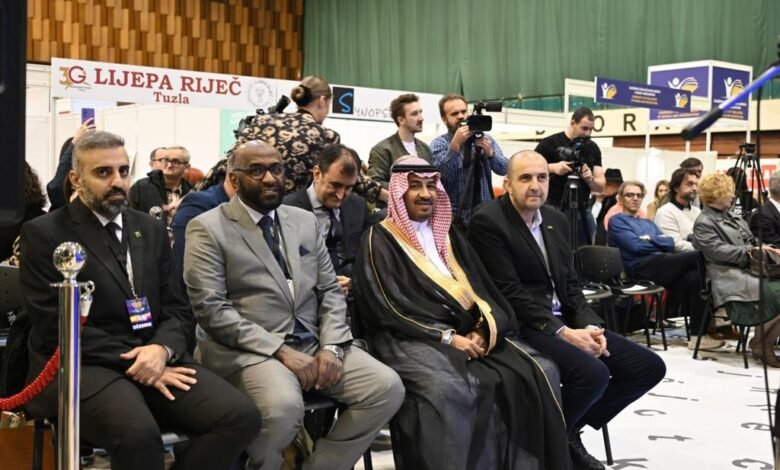 تستعرض وزارة الشؤون الإسلامية والدعوة والإرشاد ممثلة بمركز الملك فهد الثقافي، جهود المملكة الرائدة في خدمة الإسلام ونشر الوسطية والاعتدال والتصدي للغلو والعناية بكتاب الله وذلك في معرض سراييفو الدولي للكتاب بدورته 34 خلال الفترة من 12 ـ 17 / 4 / 2023م والذي يقام في صالة المعارض في مجمع “سكندريا” في العاصمة البوسنية سراييفو بمشاركة 150 مشاركا؛ و36 دارا للنشر من البوسنة والهرسك ودول المنطقة والدول الأخرى؛ وعدد من المراكز الثقافية في البوسنة والهرسك.وفي التفاصيل، تم افتتاح الجناح السعودي بحضور نائب سفير المملكة في البوسنة والهرسك الأستاذ أحمد المحايلي ووزيرة الثقافة في مقاطعة سراييفو، ووزير التربية والتعليم في جمهورية الجبل الأسود، ومدير مركز الملك فهد الثقافي المكلف الأستاذ عبداللطيف بن ناصر الحسين، وعدد من الشخصيات الرسمية والزوار.ويقدم جناح وزارة الشؤون الإسلامية عرضًا لكتب وإصدارات الوزارة والمركز الثقافية والتعليمية والتعريف بأنشطته، بالإضافة لاستعراض فيلم وثائقي عن التقدم الحضاري للمملكة ورؤية 2030، وعرض أفلام عن أجمل المدن السعودية والمعالم السياحية المهمة في المملكة، وفيلم وثائقي عن أنشطة مركز الملك فهد الثقافي في سراييفو.كما يعرف الجناح بالبرامج التعليمية والتدريبية التي يقيمها المركز وإتاحة فرصة التقديم على تلك البرامج لزوار الجناح كما خصص ركن الثقافة السعودية والتصوير بالزي السعودي وركن الأطفال والتعريف بقصص الأطفال.ويقدم الجناح لزواره عدداً من الهدايا التي تحمل شعار المركز على الزوار بمختلف شرائحهم، كما يتم توزيع الكراسات والإشارات المرجعية للكتب، وتوزيع التمور والهدايا والمطويات التعريفية بالمركز في سراييفو وفرعه بموستار، في إطار رسالته السامية في نشر ثقافة السعودية وحضارتها.جدير بالذكر أن وزارة الشؤون الاسلامية قد نالت بمشاركتها الماضية في دورة المعرض 33 جائزة الجناح الأكثر نجاحا في العرض المكتبي من حكومة سراييفو، حيث تم تتويج الوزارة بالجائزة من قبل لجنة التحكيم في إدارة معرض سراييفو الدولي للكتاب، خلال مراسم حفل كبيرة أقيمت بصالة المعارض بمجمع اسكنديريا بقلب العاصمة سراييفو.