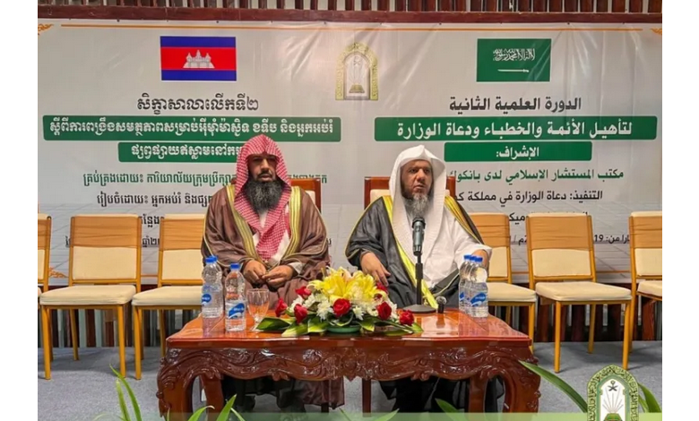 اختتمت وزارة الشؤون الإسلامية والدعوة والإرشاد، ممثلة بالملحقية الدينية في سفارة المملكة بتايلند، أمس، الدورة العلمية الشرعية الثانية للدعاة والأئمة والخطباء في العاصمة الكمبودية بنوم بنه، والتي استمرت ثلاثة أيام، استفاد منها قرابة 60 داعية وخطيبًا.