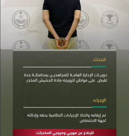 “دوريات المجاهدين” بجدة تقبض على مواطن لترويجه “الحشيش” المخدر