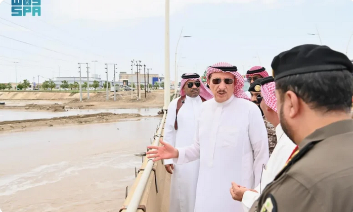 وقد اطلع سموه خلال الجولة على المخططات ومسارات الأودية، ووجه بإيجاد الحلول العاجلة لمعالجة الوضع الراهن، مقدماً شكره للجهات المعنية كافة على ما قاموا به من جهود أثمرت في الحد من الخسائر في الأرواح والممتلكات، كما وجه الشكر للمواطنين المتطوعين الذين أسهموا في مساعدة المتضررين والمحتجزين في السيول بإشراف فرق الدفاع المدني.