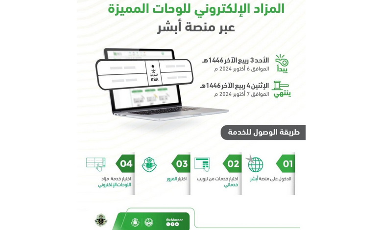 طرح المزاد الإلكتروني للوحات المميزة عبر “أبشر” اليوم