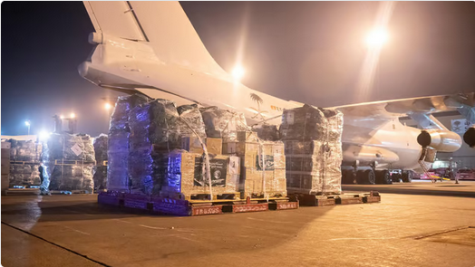 وتحمل الطائرة الثانية على متنها نحو 30 طنا من المساعدات الإغاثية بينها حقائب إيوائية، ومواد غذائية، ومستلزمات طبية، لتلبية احتياجات الأشقاء في لبنان.